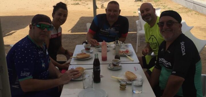 Ruta accidentada la de hoy en la que JM ha tenido dos caidas, una de ellas con varios cortes en el brazo. Estaba previsto llegar a Torrecera, pero al volverse JM para Jerez, Joaquín...